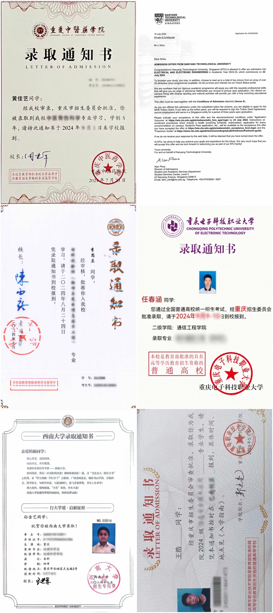 寒窗苦讀數(shù)十載,蒼穹不負少年意。恭喜李思豆同學憑借優(yōu)異成績,同時被南開大學(雙一流)及新加坡南洋理工大學兩所知名院校錄取;恭喜孫金藝同學憑借優(yōu)異成績考取了西南大學(211);另有黃佳藝、任春涵、王 浩等同學分別被重慶中醫(yī)藥學院、重慶電子科技職業(yè)大學、重慶青年職業(yè)技術學院等重點本科院校及高職院校錄取。